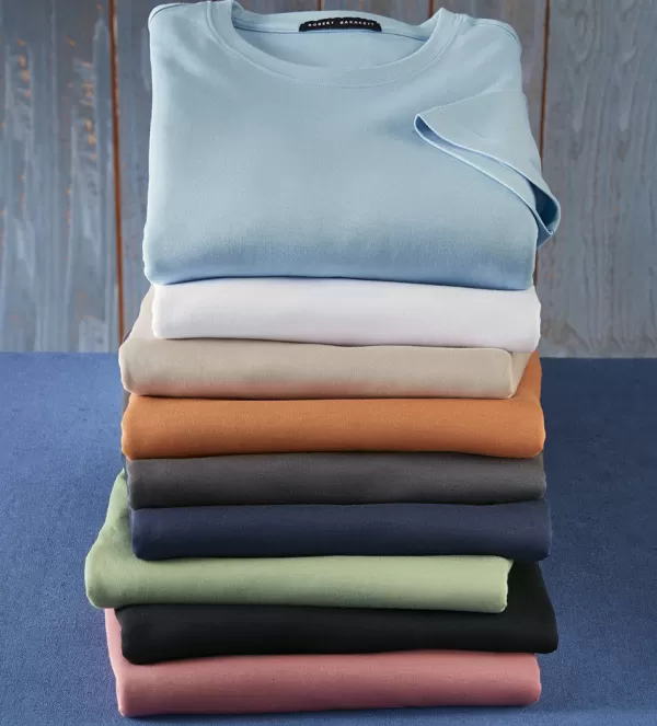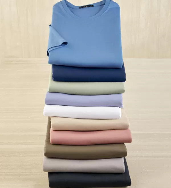 Excellent Colors In Fine, 100% Pima Cotton. Short Sleeves, Straight Hem, Vents. Comfortable Yet Slimming Fit, With A Silky Finish For An Elegant Drape. Ribbed Crewneck Styling. Machine Wash. Imported.