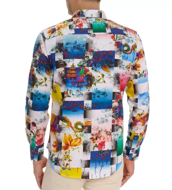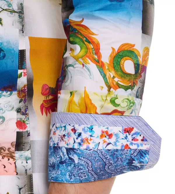 Just In Time For The Year Of The Dragon, This Walking Piece Of Art Tells The Story Of A Mythical Beast And A Sleepy Fishing Village. The Dragon Comes Alive In A Vibrant Hand Embroidered Design. Larger Than Life Embroidered Florals, Turbulent Skies, And Humble Houses Pop Against Bold Blocks Of Color. An Rg Paisley Print Peeks Behind A Popped Collar And Cuff.